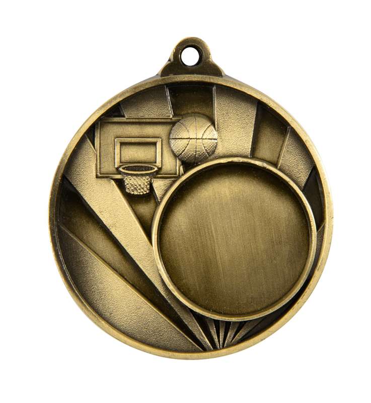 The Budget Heavyweight series offers prestige antique gold medals for a range of sports and activities at great value. The Basketball medal features an abstract ball inspired design with detailed court foreground.