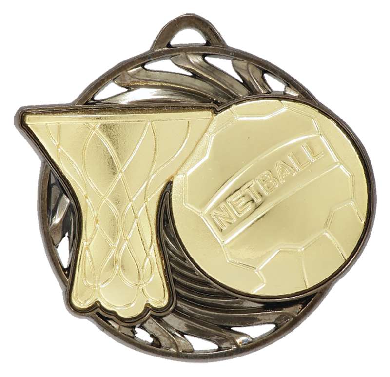 Classic & traditional wreath inspired medals for Netball. A generic theme suitable for all players, medal design features the iconic ball and celebratory wreath representing high achievement. Available also in shiny gold, silver and bronze. Ribbons and boxes to suit.