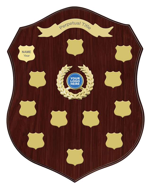 Showcase your logo with this great value shield award – supplied with stand. Elegant design finished in classic rosewood colour.